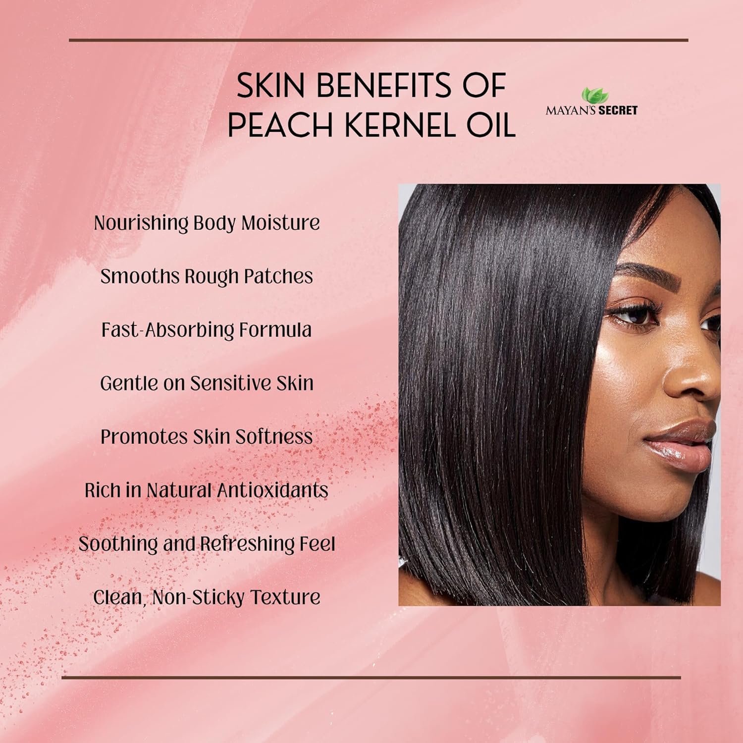 Nourishing Elixir: Mayan's Secret Peach Kernel Oil, rich in essential fatty acids, can provide deep nourishment to hair strands, potentially promoting softness and manageability.