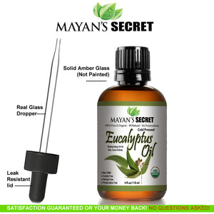 PURE EUCALYPTUS OIL: Mayan's Secret Eucalyptus Oil is USDA certified organic, ensuring its high quality and purity. No dilution or adulteration, just the natural essence.