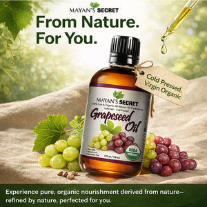 Experience the natural power of organic grapeseed oil. Mayan’s Secret Grapeseed Oil is cold pressed and unrefined to help preserve naturally occurring antioxidants, essential fatty acids, and Vitamin E. This lightweight oil absorbs quickly and leaves hair and skin feeling soft, smooth, and refreshed without a greasy residue.