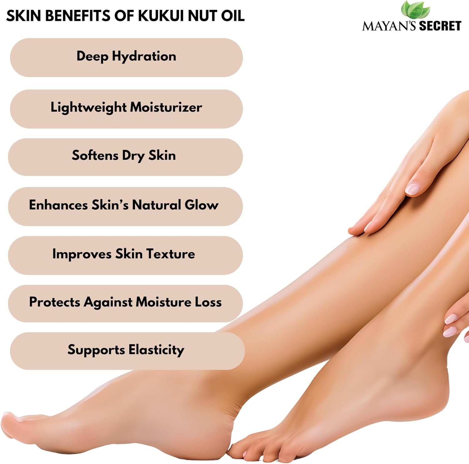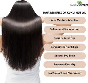 Silky Skin Hydration: Mayan's Secret Kukui Nut Oil's lightweight texture makes it an effective moisturizer, potentially promoting silky-smooth skin without a heavy feel.