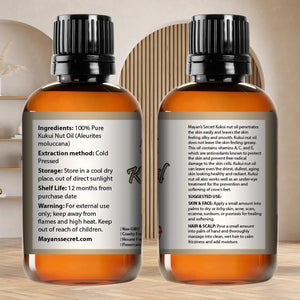 Many Uses: Mayan's Secret Kukui Nut Oil offers versatile applications, suitable for nourishing skin, hair, and body, infusing your self-care rituals with the enriching essence of kukui nuts.