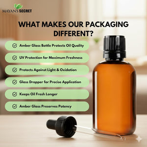 Amber Glass Bottles and Glass Droppers: We prioritizes the quality of our oil by utilizing amber glass bottles and glass droppers, safeguarding it from light and external factors. This preserves the oil's potency that promotes best skincare.