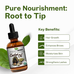Mayan’s Secret Organic Castor Oil is cold pressed and unrefined to preserve natural nutrients. This premium beauty oil is derived from the seeds of the castor plant Ricinus communis and is naturally rich in essential fatty acids and Vitamin E.