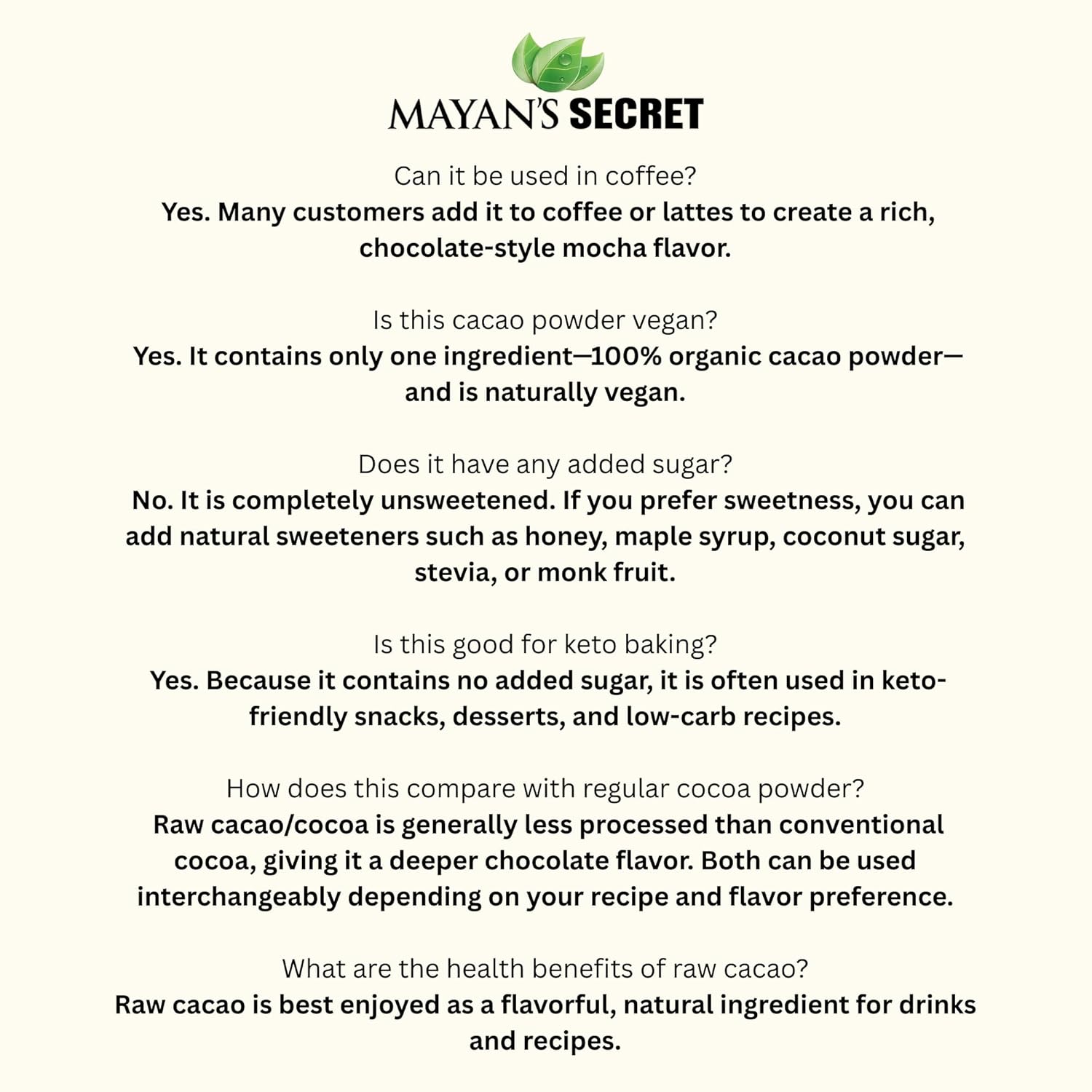 Indulge in the Richness of Mayan's Secret Cacao Powder - Your Key Ingredient for Delicious and Nutritious Creations!