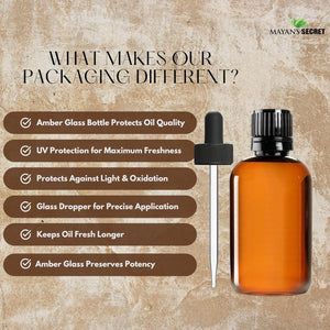 Commitment to Packaging Excellence: Mayan's Secret's unwavering commitment to exceptional quality is demonstrated through our packaging. This choice not only preserves and protects our oil but also enhances the overall skincare experience, reflecting their dedication to providing natural, nourishing, and effective products.