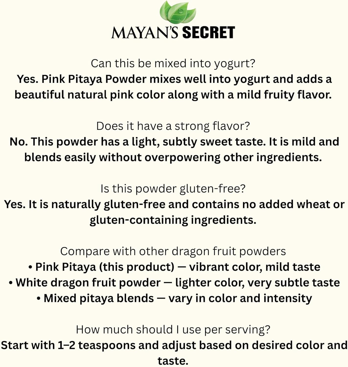 Elevate your recipes and embrace the natural goodness of Mayan's Secret Pitaya Powder.