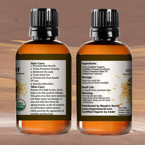 Premium Ingredients: Mayan's Secret Sesame Seed Oil is sourced from meticulously selected sesame seeds, known for their exceptional nutritional value and purity.