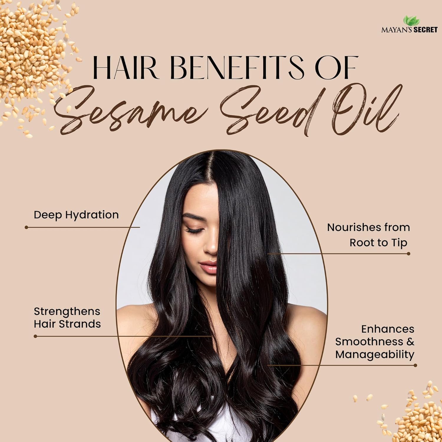 Nourishing Elixir: Enriched with essential nutrients and antioxidants, Mayan's Secret Sesame Seed Oil provides deep nourishment to hair follicles, promoting healthy and vibrant hair.