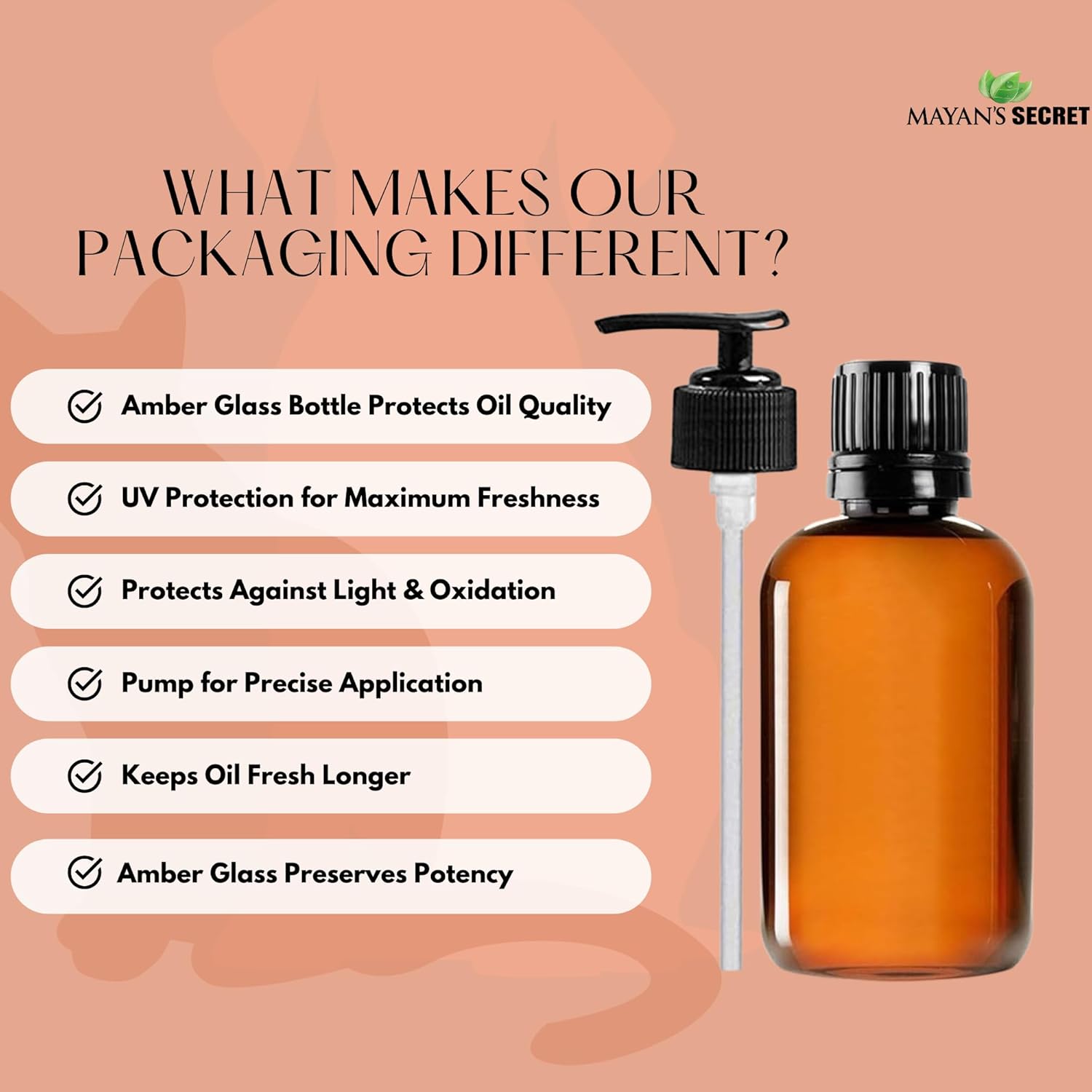 The glass bottle helps protect the oil from light exposure and helps maintain product freshness and quality.